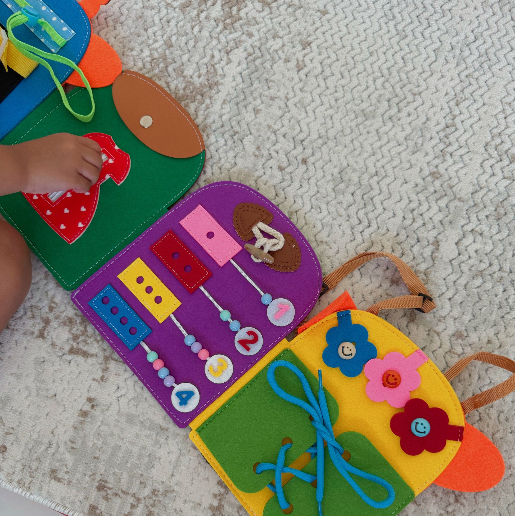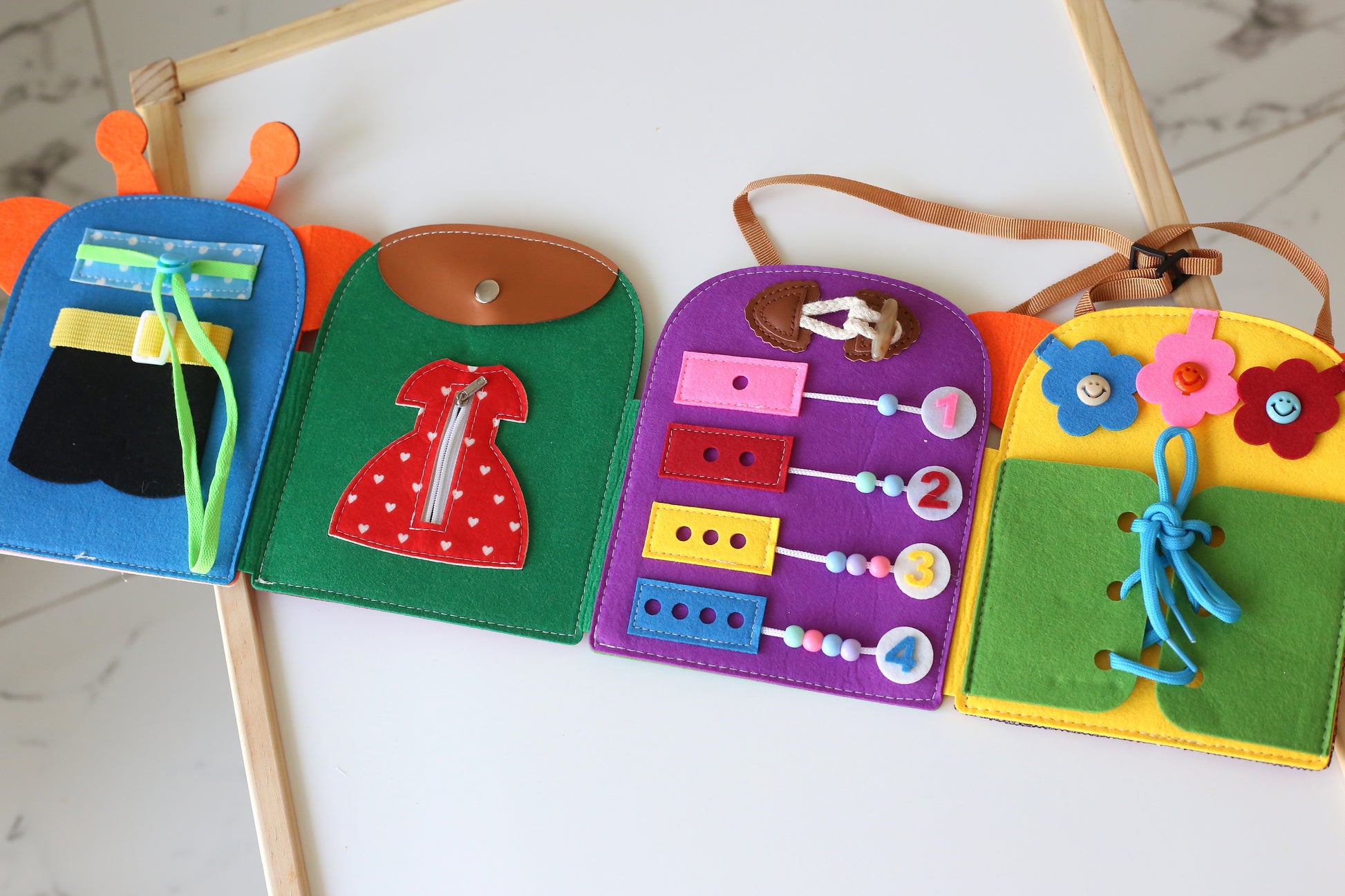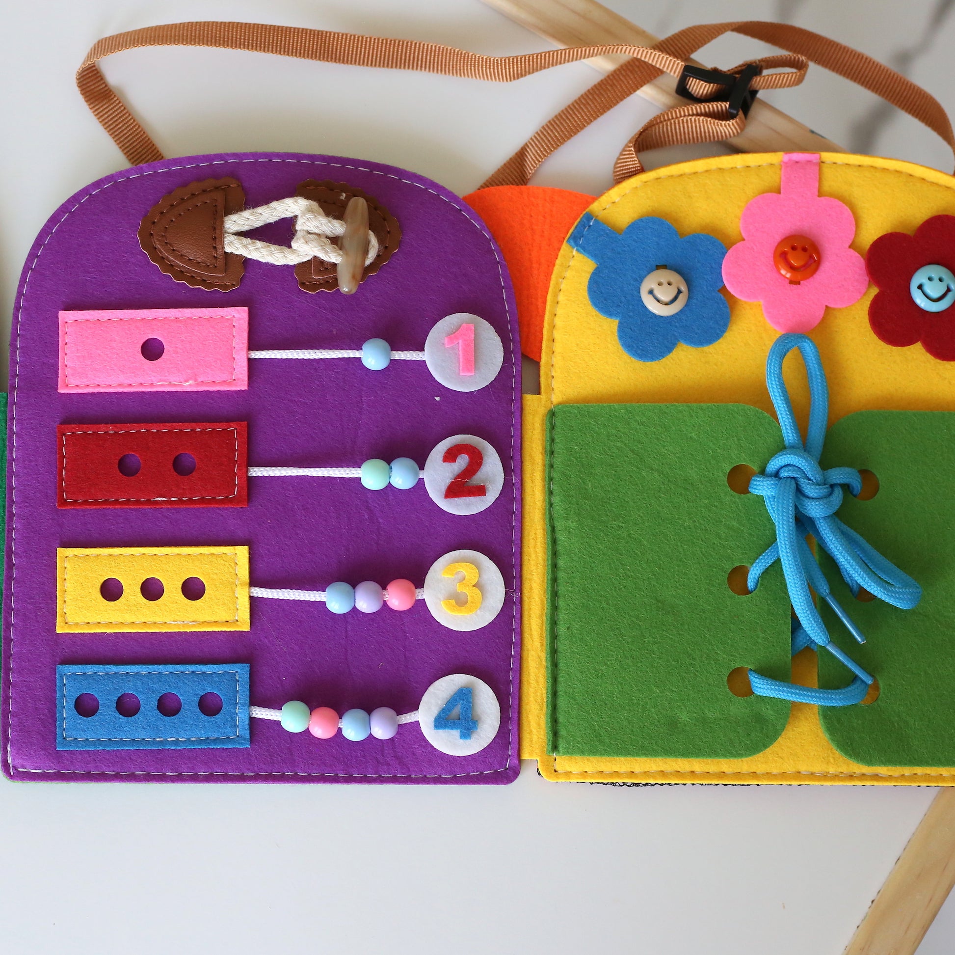 The perfect blend of learning and play, our Little Life Skills Busy Book keeps curious hands busy while teaching everyday skills. With zips to zip, buttons to fasten, laces to tie and counters to count, this soft fabric book is designed to build independence through fun, hands-on play. Lightweight and portable, it’s your new go-to for travel, restaurant outings, or quiet time at home.