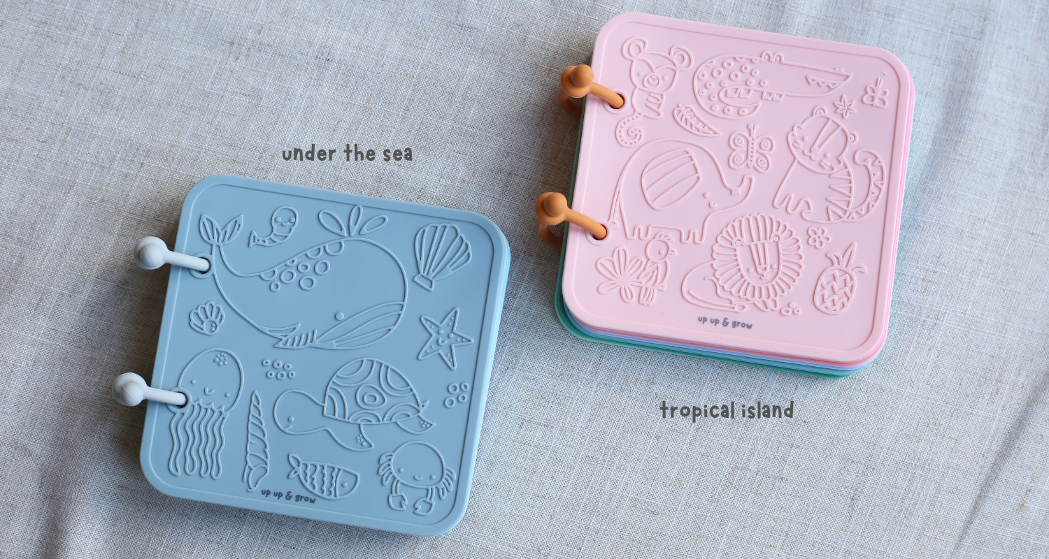 Dive into a wild adventure with our non-toxic silicone sensory bath book! Bath time becomes an exploration of two enchanting worlds: a vibrant underwater journey and a thrilling safari expedition. Tiny fingers will love flipping through and exploring the designs and textures and best of all, it’s chewable! Made from 100% food-grade silicone, this book is a teether’s dream.
